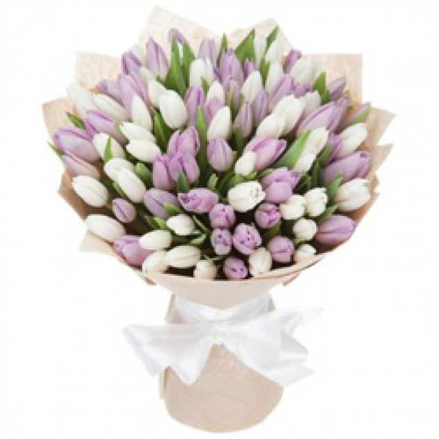 Состав: Упаковка для букета: крафт-бумага, Тюльпан 51шт., Цвет уточняйте заранее.