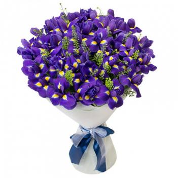 Роза белая 60 см 12шт., Упаковка для букета: натуральная сетка-джут, Альстромерия 7шт., Салал 10шт., Роза желтая 60 см 13шт.