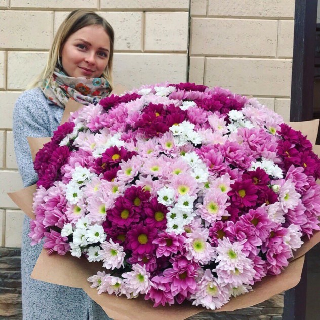 Шикарнейший букет из микса хризантем в количестве 51 штуки.