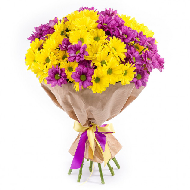 Упаковка для букета: крафт-бумага, Хризантема кустовая 15шт.