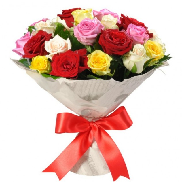 Состав: Упаковка для букета: крафт-бумага, Роза красная 60 см 5шт., Роза белая 60 см 5шт., Роза кремовая 60 см 5шт., Роза розовая 60 см 5шт., Роза желтая 60 см 5шт.